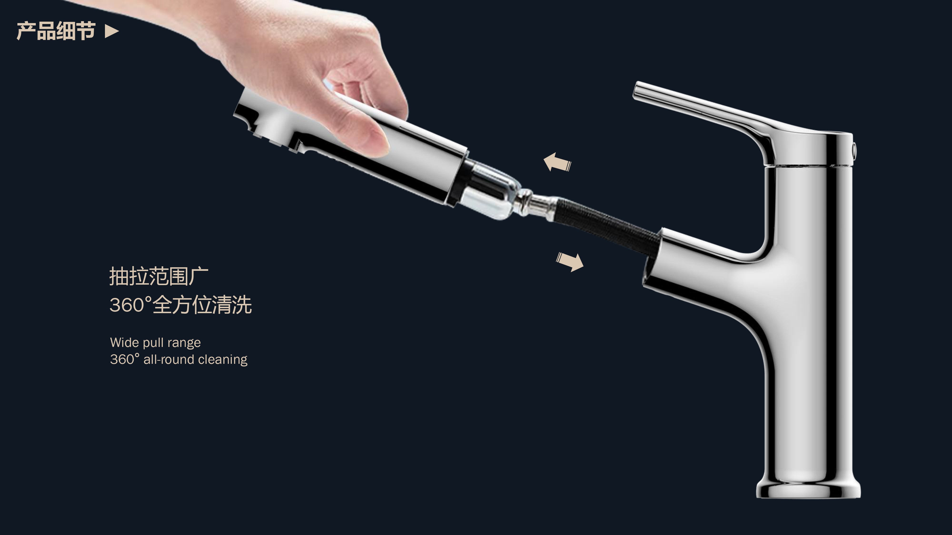 出水溫度實時看得見,解鎖龍頭舒適用法;抽拉范圍廣,360°全方位清洗;日常洗頭利器,龍頭抽拉出水輕松洗;氣泡水有效防濺,柔和親膚,潔凈省水;重力錘復(fù)位系統(tǒng),順暢伸縮,精準(zhǔn)回位