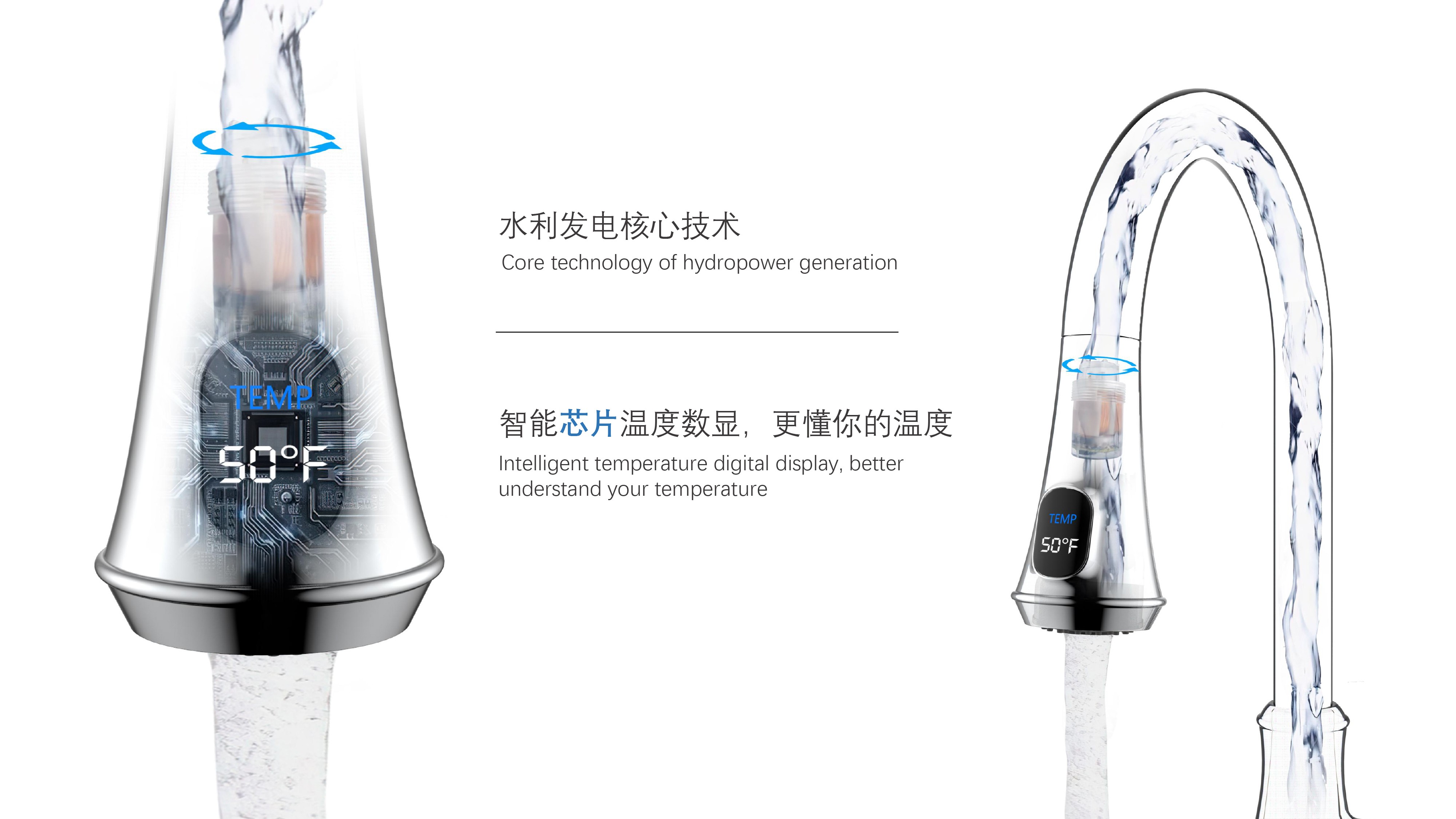 古典廚房龍頭;抽拉頭隨意抽拉多角度使用;采用全密封防水端頭;水力發(fā)電技術(shù),智能芯片溫度數(shù)顯-冷水TEMP顯示藍色、溫水TEMP顯示綠色、熱水TEMP顯示紅色